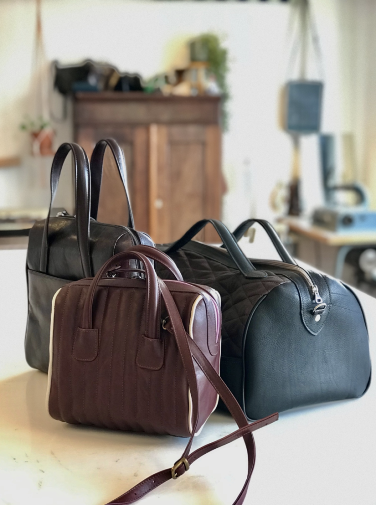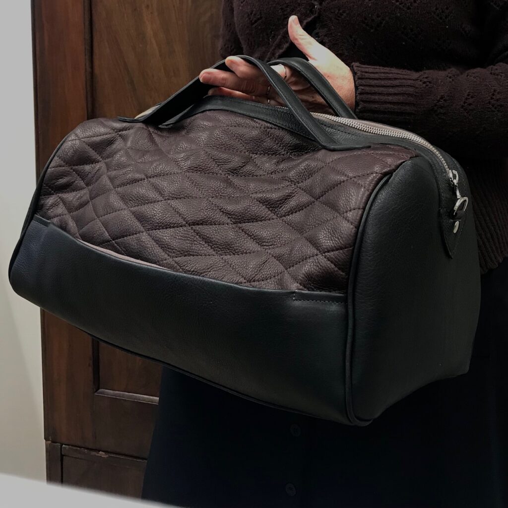 Een tas met een onverwachte werkvolgorde waar je ongelooflijk veel technieken in kwijt kan, zoals kantenverven, paspoils maken, een blinde rits en handvatten met kern.
