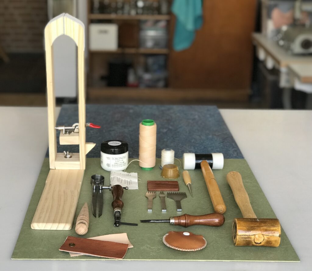 Je maakt deze dag een telefoontasje, een vouwtasje of een brillenhoes, die je eventueel kunt voeren met een mooie pigskin.Je kunt de kanten afwerken met tokonole of kantenverf en je kunt het nog mooier maken door bijvoorbeeld te perforeren of in te snijden en te vlechten. Omdat we met deze workshops niet met machines aan de gang gaan en de patronen al klaar zijn, is dit ook een hele leuke workshop voor mensen die nog nooit een tas gemaakt hebben.